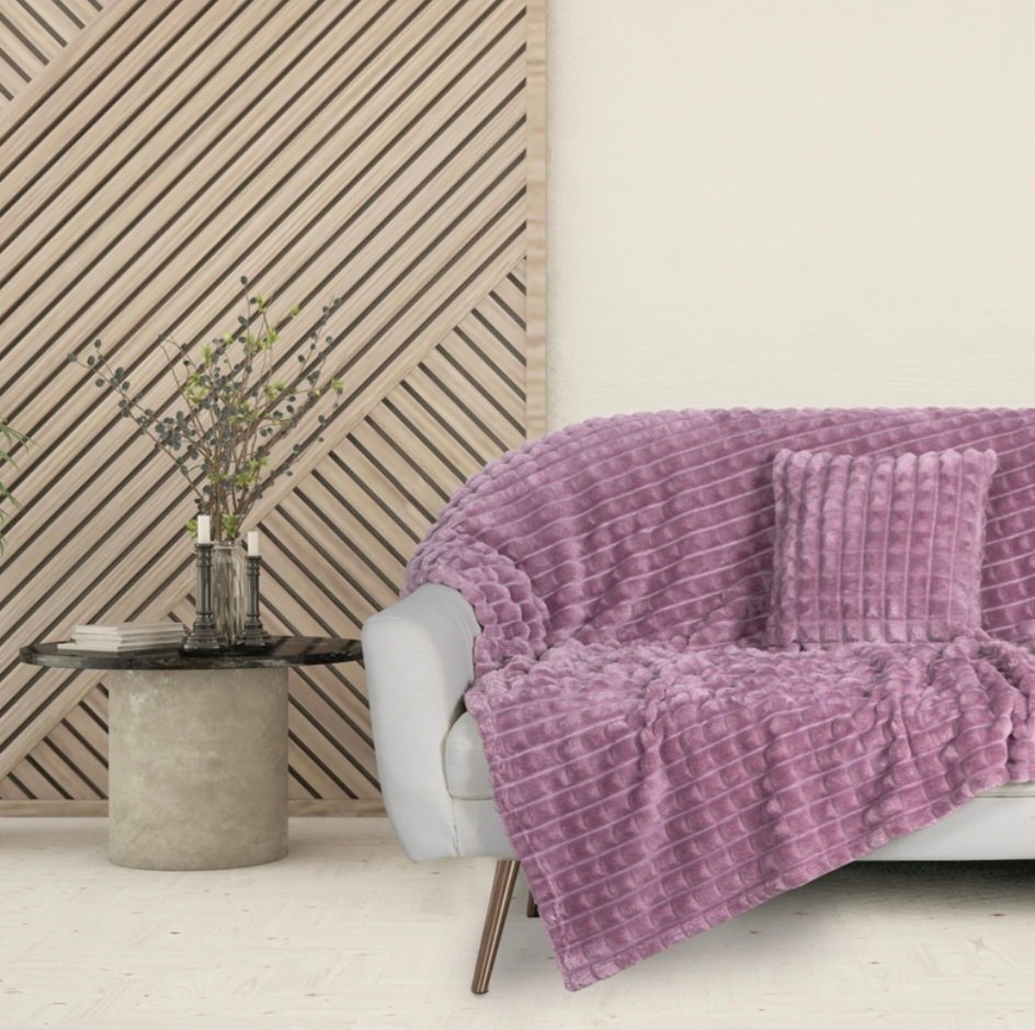 - Διακοσμητικό ριχτάρι σε μωβ χρώμα, με ανάγλυφο σχέδιο από την εταιρεία Das Home.